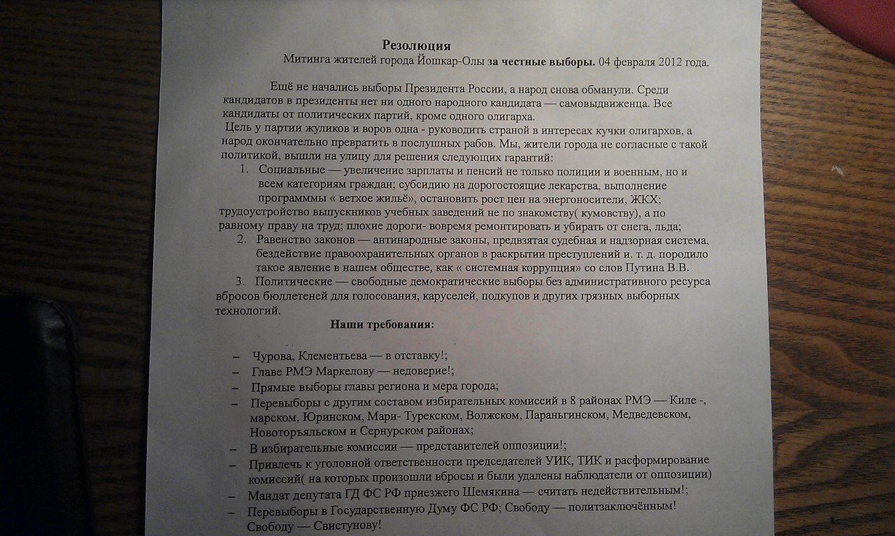 Резолюция митинга