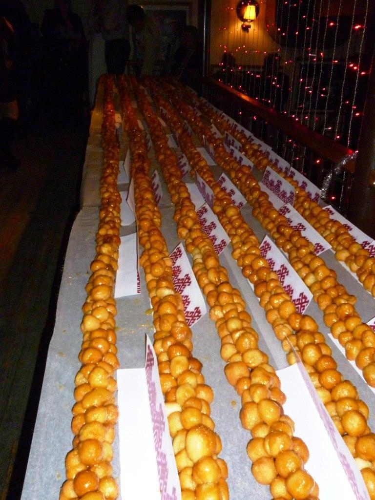 Пока рекордное блюдо выкладывалось на втором этаже кафе, в основном зале шел праздничный концерт, викторины, игры, посвященные финно-угорским обрядам и обычаям, прекрасно проведенные ведущей – певицей Вероникой Кондратьевой. С приветственными словами выступили председатель московского общества финнов-инкери Николай Фомин и заместитель Общества чувашской культуры г. Москвы Гурий Крылов. В концертной программе принимали участие певицы Алевтина Крылова и Марина Кириллова. Чудесно прозвучали «Мелодии Марийского края» в исполнении победителя всероссийского конкурса исполнителей Фарида Халикова. Порадовал искусной игрой Владимир Шамиданов, флейтист оркестра «Виртуозы Москвы» под управлением В. Спивакова. Стихи о малой родине прочитала первый диктор марийского телевидения, заслуженная артистка Марий Эл Лариса Матвеева. Нежную песню о матери исполнила лауреат международных конкурсов коми певица Ирина Косолапова, аплодисменты сопровождали задорную мокшанскую песню в исполнении Алены Алямкиной и эрзянские мелодии в исполнении баяниста Дмитрия Агунькина.