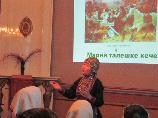 Более подробно о марийских героях рассказала на эстонском языке докторантка Тартуского университета Татьяна Алыбина. Свое выступление она сопровождала видеопрезентацией на русском языке.