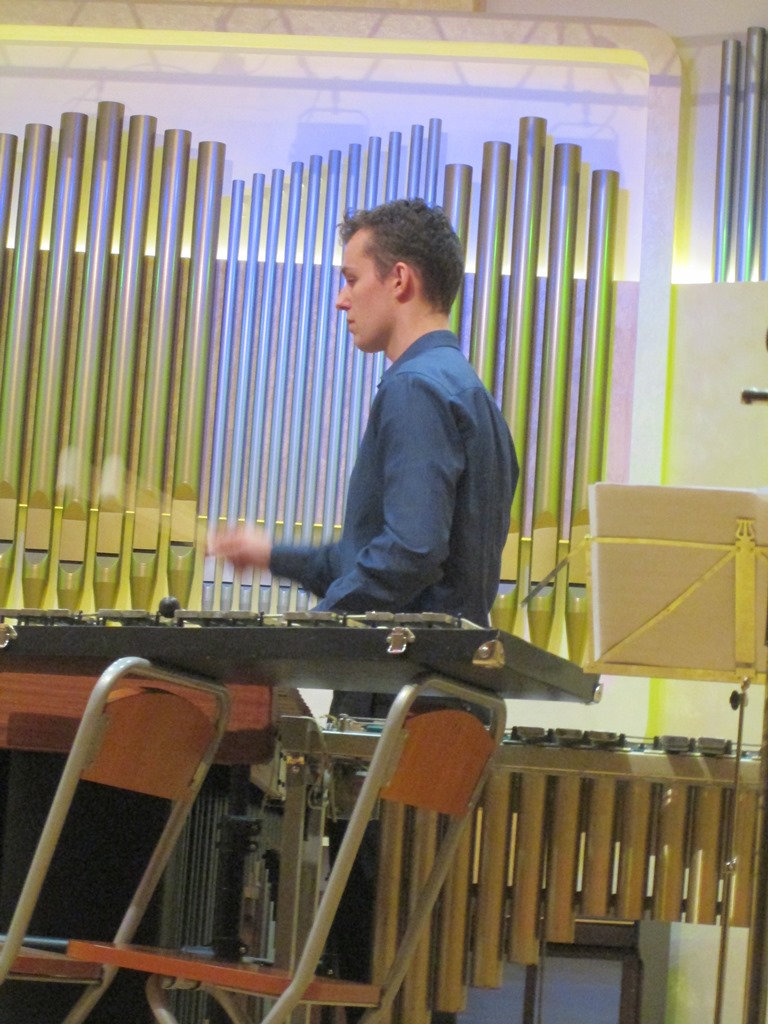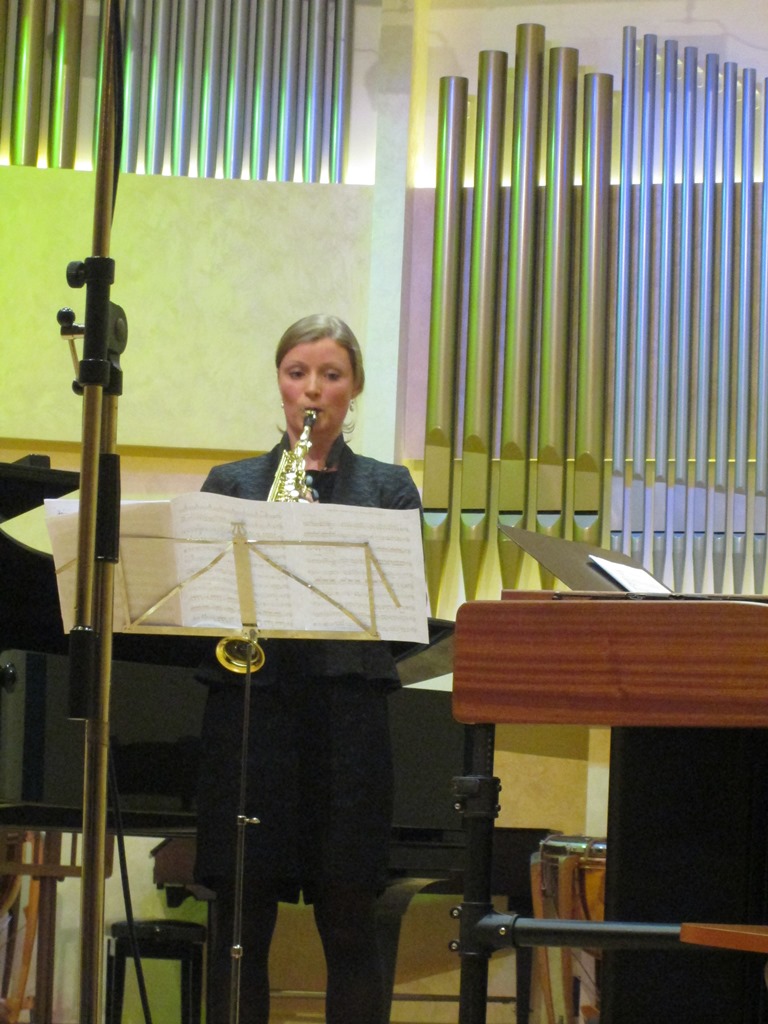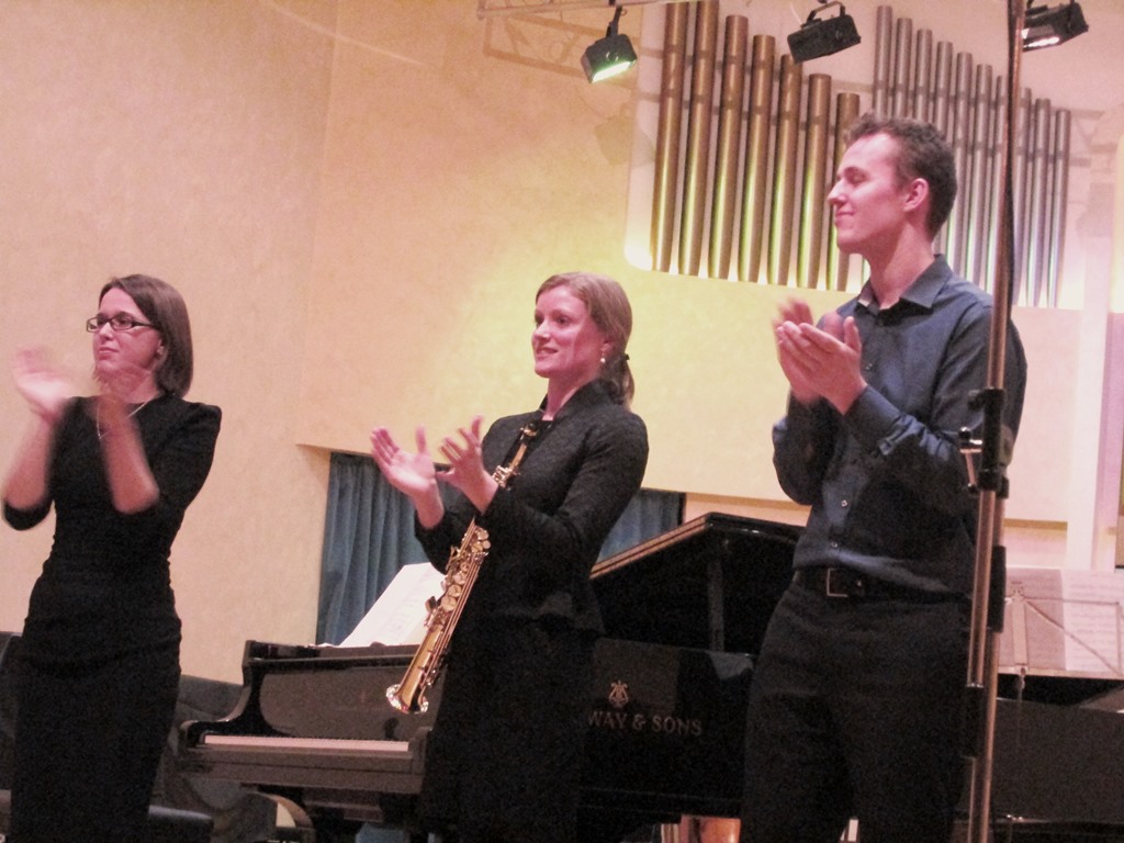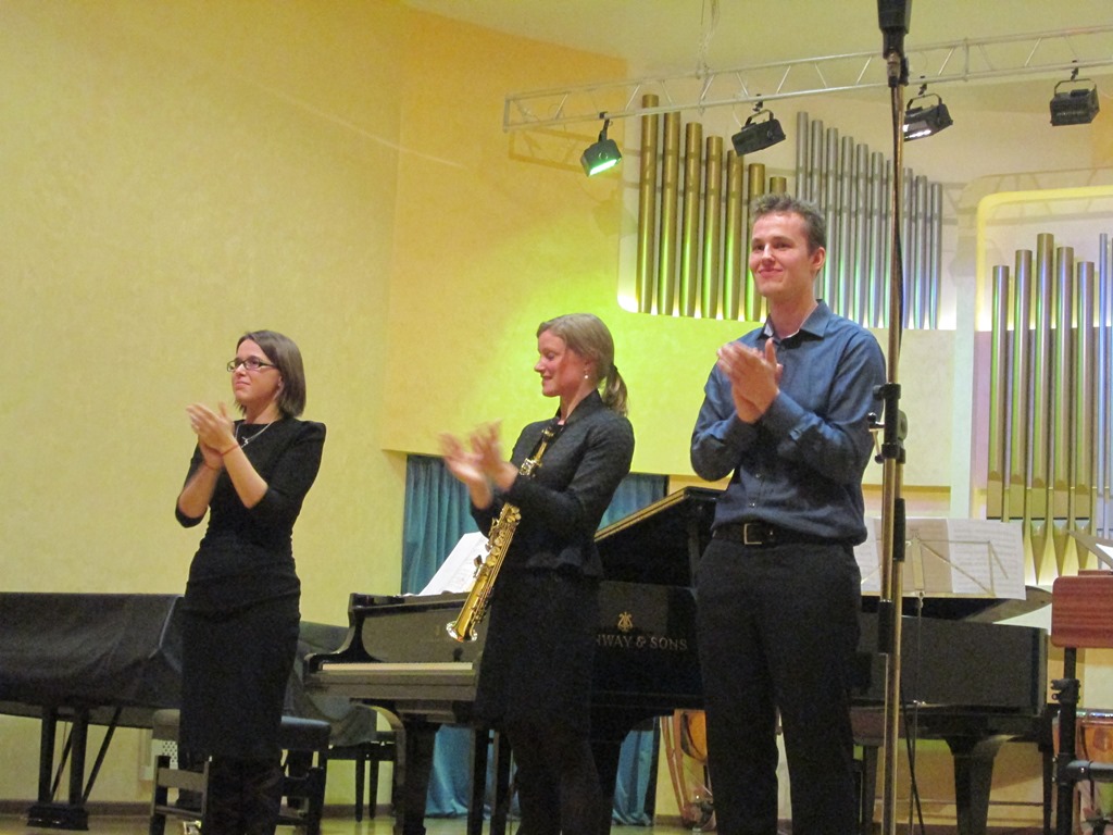 Удивительный хрустальный звук вибрафона в сочетании с темпераментным наплывом фортепианных пассажей и мягкого, трогательного, почти волыночного голоса саксофона дали неожиданный эффект: глубинная сила марийского фольклора проявилась в европейской пасторальной традиции, прозвучала свежо и волнующе. Более того, слушателей ожидал сюрприз — две народные песни в обработке Якова Эшпая были исполнены Марией Эшпай на марийском языке.