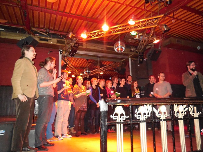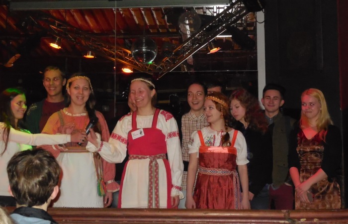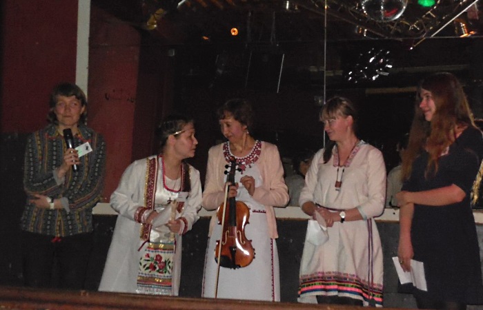 Приветственное слово взяли хозяева вечера, исполнив две песни, традиционную и шуточную, причем в исполнении последней поучаствовали и гости Гёттингена. Эстонская делегация была презентована как мультинациональная: от Эстонии на сцену помимо эстонцев вышли занимающиеся в этой стране научными исследованиями финны, коми, марийцы и удмурты. Выступление делегации из Республики Коми запомнилось зажигательной коми кадрилью, делегация из Финляндии исполнила песню на финском, шведском и немецком языках. Порадовали выступления и небольших делегаций, состоящих из одного-двух человек. Делегаты из Карелии и Белоруссии коротко рассказали о себе и посетовали на отсутствие оборудования для показа заготовленных презентаций.
