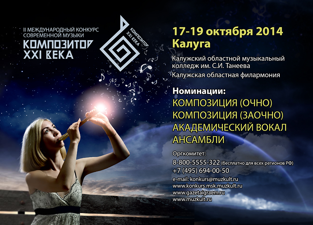 С 17 по 19 октября в Калуге проходил II Международный конкурс современной музыки «Композитор XXI века». В конкурсе принимали участие более ста молодых музыкантов из России, Украины, Белоруссии, Армении, Узбекистана, Казахстана, Монголии, Израиля и Бразилии.
