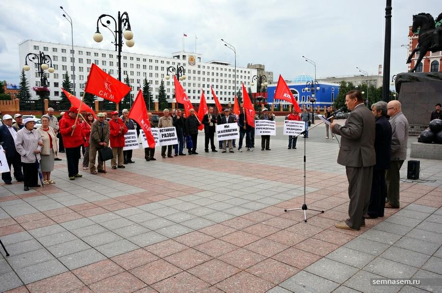 Члены КПРФ Марий Эл 20 июля собрались на площади Оболенского-Ноготкова с целью остановить вымирание населения республики.
