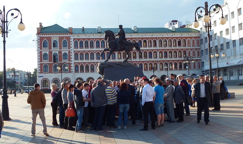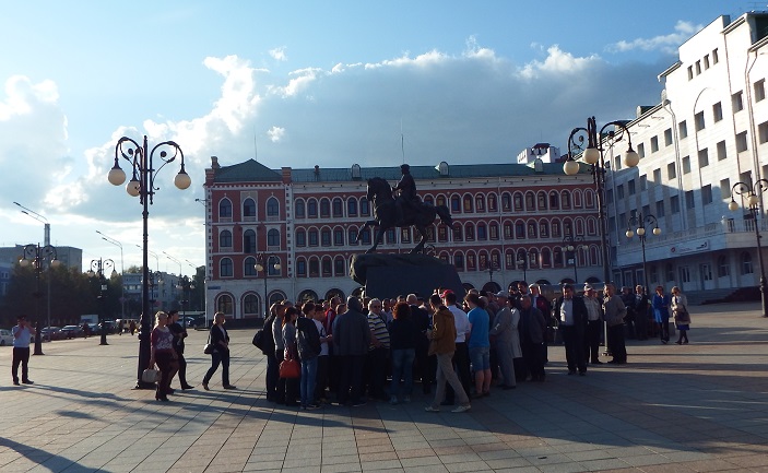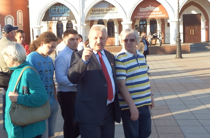 На площади Оболенского-Ноготкова, по сути, собрался постоянный актив кандидата Мамаева, представители национального движения, поддержавшие коммунистов. Заслуженная артистка Марий Эл Раисия Данилова рассказала корреспонденту «7×7» о том, что вчера представитель городской полиции вручил ей предостережение об экстремизме.