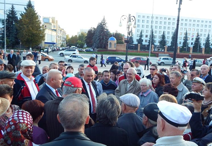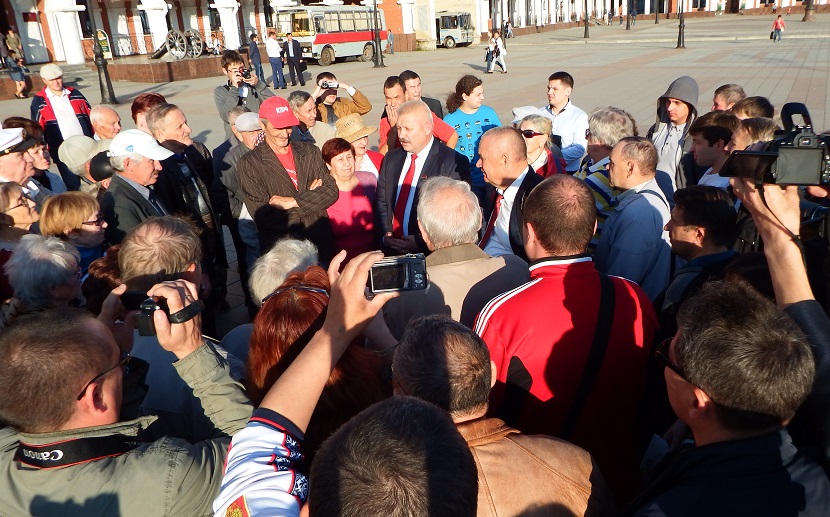 На площади Оболенского-Ноготкова в это время уже кучковались небольшими группами избиратели. Сергей Мамаев появился стремительно — люди окружили его плотным кольцом.