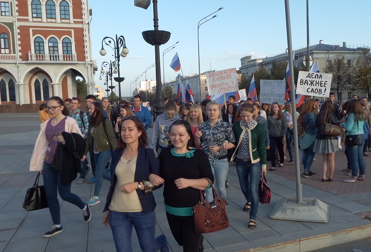 Сегодня в столице Марий Эл прошли два публичных собрания. На одном возмущались итогами выборов и выражали поддержку Сергею Мамаеву. На другом же – одобряли результаты и выражали солидарность с Леонидом Маркеловым.