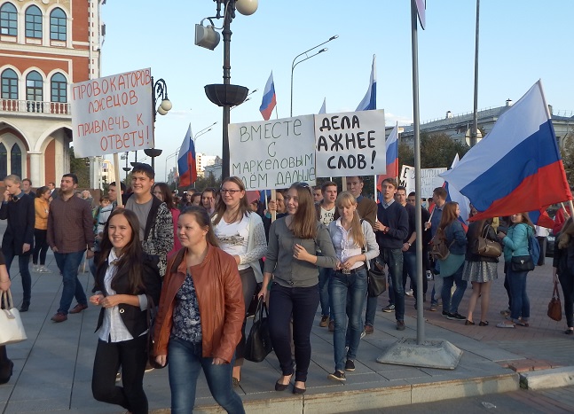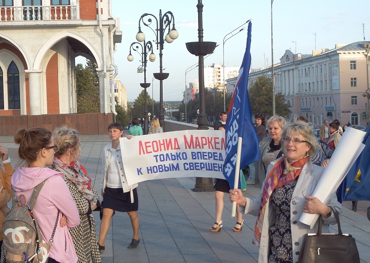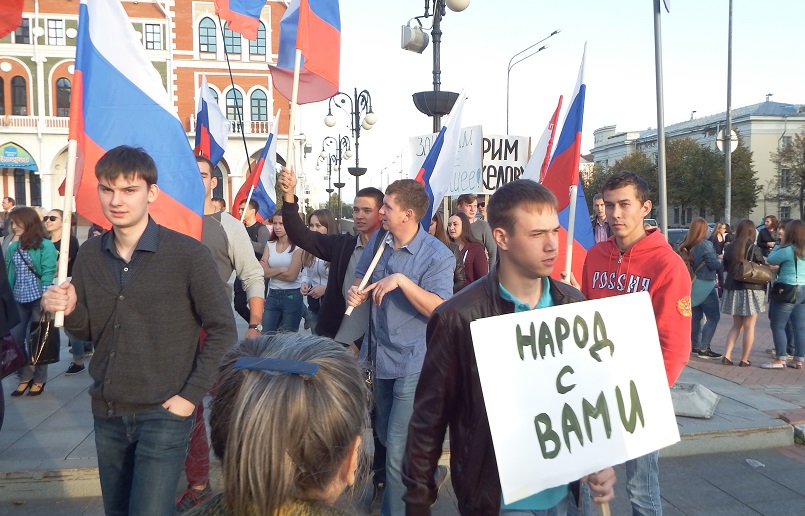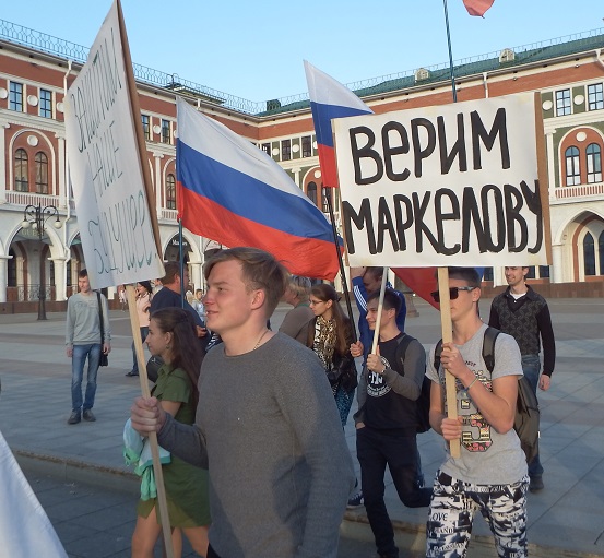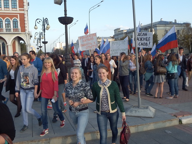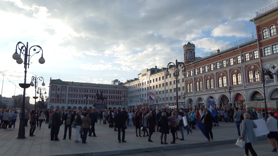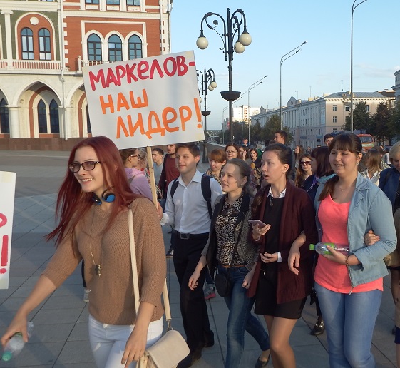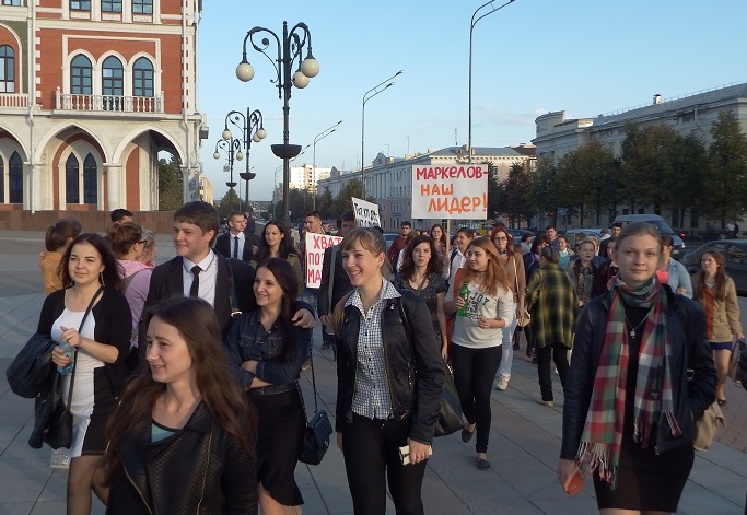 В 17 часов на площади Оболенского-Ноготкова прошел митинг «За стабильное развитие Республики Марий Эл». Куда власть имеющие загнали в обязательном порядке бюджетников и студентов. Разумеется они держали лозунги в поддержку Леонида Маркелова.
