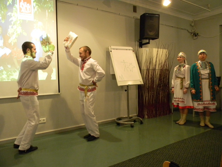 Во второй части вечера наоборот участники ансамбля и другие марийцы осваивали эстонские танцы.