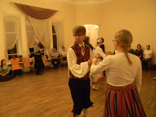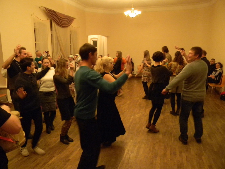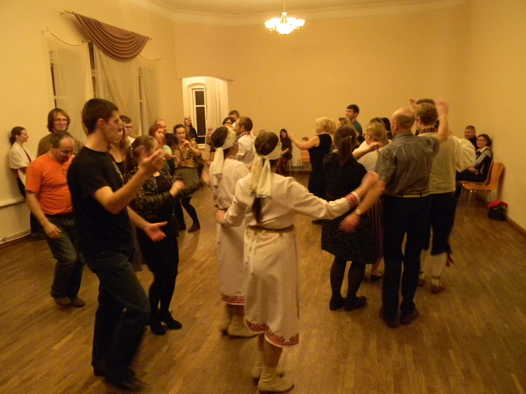 Вечером в 20 часов гостей ждали в Клубе танца Дома обществ на улице Тийги. Это своего рода дом культуры, который является подведомственным учреждением отдела культуры Тартуской городской Управы. При учреждении действует Клуб танца, куда пару раз в месяц собираются люди и под живую музыку учатся танцевать народные танцы.