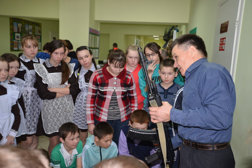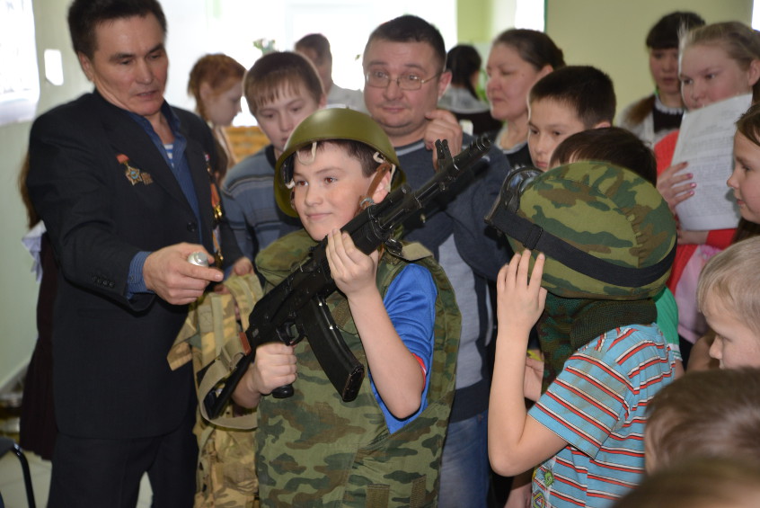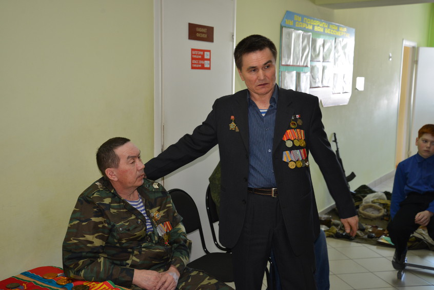 Подполковник запаса, участник войны в Афганистане, выпускник школы Рево Сайтеев подробно рассказал о тех страшных событиях. А с каким любопытством и интересом ученики сравнивали обмундирование солдат 80-х годов и современными амунициями, макеты оружия и гранат.