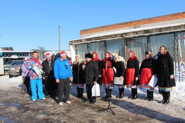 Тут уже играла музыка. В честь встречи Раисия Данилова исполнила живьём свою песню. Открылась встреча торжественно. Запыхавшиеся лыжники отдышались, было радости полно. Ведь среди стартовавших от Мари-Турека было несколько олорских молодцов. С поздравительным словом выступил только что пробежавший в первых рядах генеральный директор ООО СПК «Звениговский» С.И.Казанков. Он поблагодарил встречающих с таким прекрасным весенним днем и прекрасным стартом.