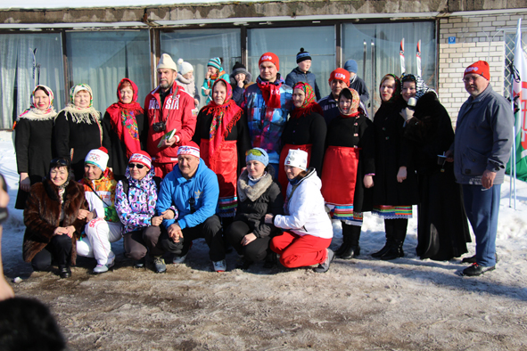 Нам не удалось сопровождать на машине маршрут Мари-Турек – Олор, так как такой дороги почти нет, если не считать, что проехал бульдозер, прокладывая путь. Но туда на легковой машине не полезешь. Сопровождающая группа на нескольких машинах направилась в объезд через Параньгу в Олор. К нашему приезду встречать на первом пункте лыжников-переходцев уже собирался народ, они заранее знали, что достойно встречать лыжников, собравшихся на дальнюю дорогу – это для них честь. Тем более, что с песенными поздравлениями в Олор спешили также наши любимые артисты – Раисия Данилова и Татьяна Денисова. И хочется заранее сказать слова благодарности сказать олорцам, что они такие приветливые и активные.