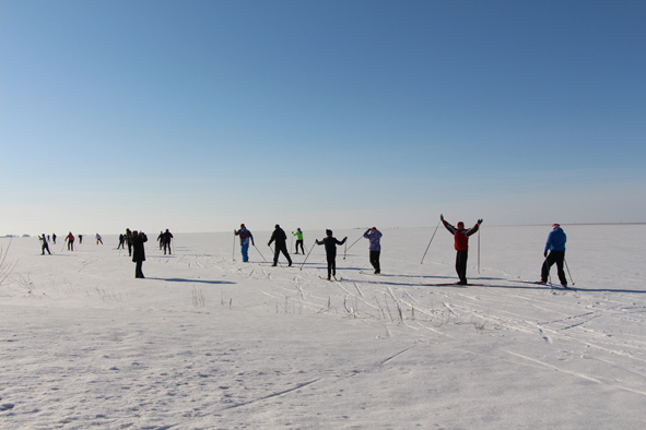 И вот один из организаторов, советник президента МАОО «Марийский мир – 21 век» Игорь Михайлович Кудрявцев дал команду построиться для торжественного открытия эпохального события – Лыжного перехода в честь 80-летия первого такого же перехода ударников-колхозников Йошкар-Ола – Горький. Лыжники стали в линию старта. Немного-немало, их было около тридцати человек. Среди них были самые разные: молодые и пожилые, известные и неизвестные. Но чувствовалась атмосфера лыжного азарта, что все они вдохновлены великолепным примером перехода восьмидесятилетней давности, чувством гордости, что они сыны земли марийской.