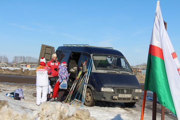 Подъехала «Газель». Это машина основных бегунов, которые, стартуя в Мари-Туреке, все до единого нацелены дойти до границы с Чувашией. А этот путь не близкий – более 200 километров. Мы поинтересовались у руководителя группы и духовного вдохновителя этого бесподобного пробега, члена РОО «Марий ушем» («Союз мари») Георгия Михайловича Ашкельдина, сколько же вот этих «смельчаков»? На что получили ответ, что их на старте шестеро. Он улыбнулся и сказал, что могло бы быть намного больше. Ведь 80 лет назад ударников-колхозников было в разы больше. Упадок в сельском хозяйстве, упадок и духовной мощи людей. Несмотря на это, заявились многие любители лыжного спорта, которые бегут неблизкие расстояния. Например, Мари-Турек – пос. Советский, Куженер – г. Йошкар-Ола, Йошкар-Ола – Коротни, Визимъяры – граница с Чувашией.