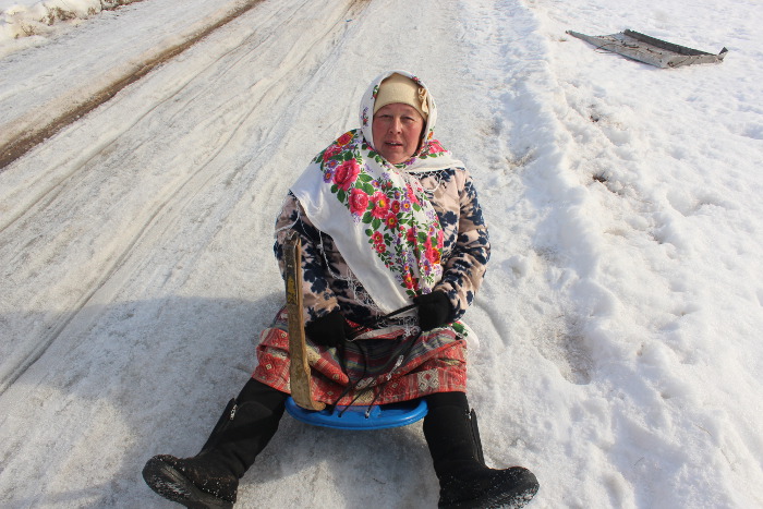 Хотя и у меня были другие планы, со словами «живя в обществе нельзя быть свободным от него», взяв фотоаппарат, направила стопы на горку! Бальзам на душу добавил понурый вид головы села, перенесшего совещание для участия в Ӱярня и тоже идущего в «народ»!. В итоге, благодарили бабушек, заставивших прийти на блины.