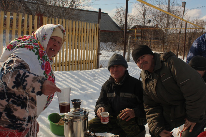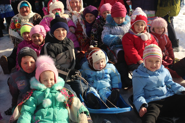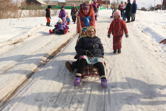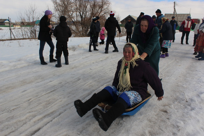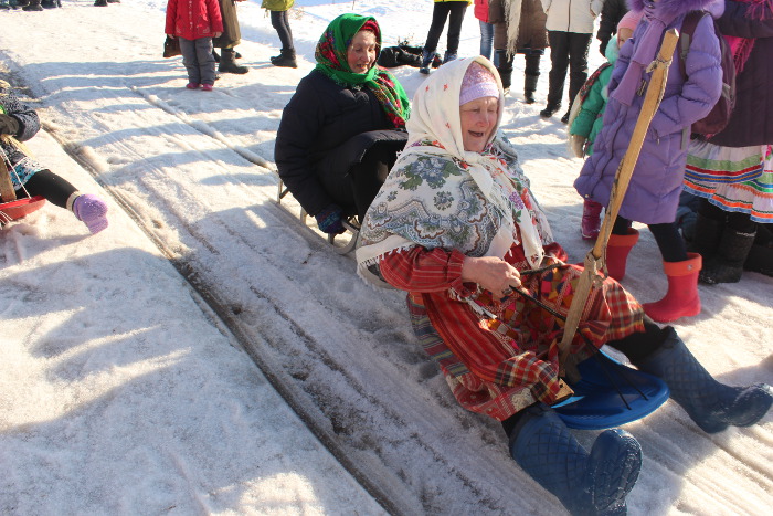 Активные бабушки показали Ӱярню во всей красе: песни, катание на горках. Столы ломились от угощений: блины, пироги, ватрушки.