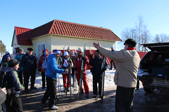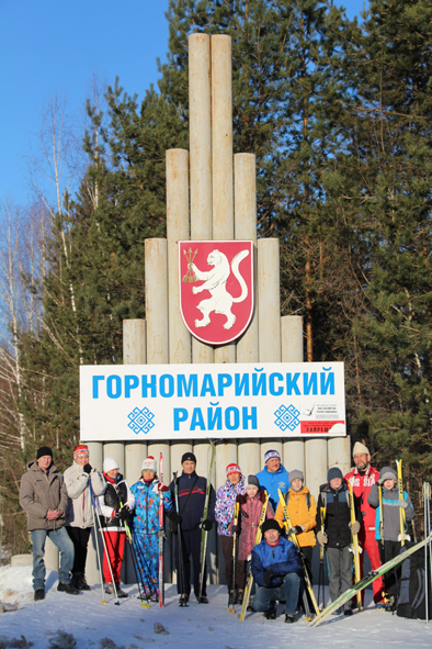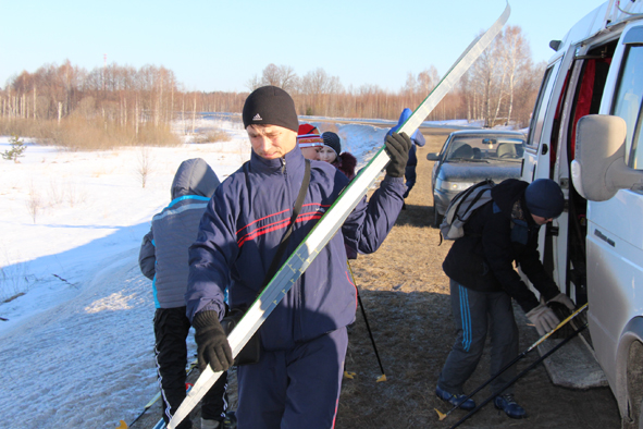 После турбазы «Раздолье», что находится в Ардинском сельком поселении, несколько десятков километров участники вынуждены были проехать на «Газели» и на автомашинах. Дело в том, что Килемарский район славится лесами, на некоторых участках совершенно нет полей (хотя и по другим территориям многие поля уже разрастали кустарниками). У границы Килемрского с Горномарийским районом, у стелы, нас поджидали юные лыжники Руткинской школы.