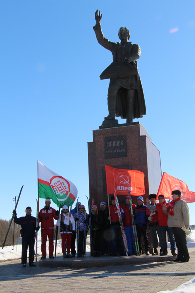 И вот участники Лыжного перехода–2016, посвященного 80-летию такого же перехода в 1936 году до г. Горький, на правом берегу Волги, на Горномарийской земле. Играла музыка. Все подтянулись в сторону стелы Воинской славы. На встречу лыжников пришли представители КПРФ. Ю.Е.Саличкин произнес приветственные слова, поздравил всех участников с их мужественным поступком, передал слова благодарности от Рескома КПРФ И.И.Казанкова. С приветственной речью выступали также и другие коммунисты. Мы находились на замечательном историческом месте, которое неразрывно связано с историей нашей страны.