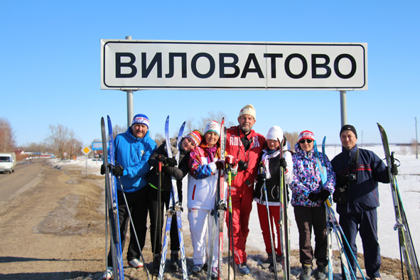Через час-полтора на горизонте появились лыжники. Вот еще последние километры – и маршрут будет завершен с честью. Перед тем, как войти в село Виловат, участники Лыжного пробега–2016 от Марий Турека до границы Чувашии остановились запечатлеться на память у дорожной вывески «Виловатово». Солнце светило прямо в глаз, ласково приветствовал с завершением этапа…