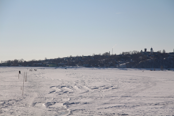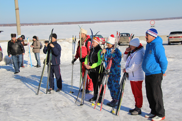 На правом берегу, в Козьмодемьянске, уже поджидали встречающие участников Лыжного перехода–2016 – издалека был слышен голос через «Мегафон» Юрия Егоровича Саличкина, руководителя отделения КПРФ Горномарийского района. Лыжники стали подтягиваться, детишки, которые сопровождали от Рутки, остались на том берегу: прошагать по льду было не так просто.