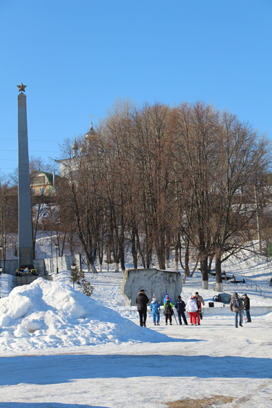 После этого была небольшая передышка и лыжники направились в сторону Центра Козьмодемьянска. Желающие сфотографировались перед памятником В.И.Ленину. Подъехала машина и они направились в другой конец города. (Некоторые скептики могут сказать, мол, этим лыжникам лень было пробежаться по городу. Но причина была совершенно в другом – пройтись по обочине дорог не было возможности, а по асфальту на лыжах не бегают).