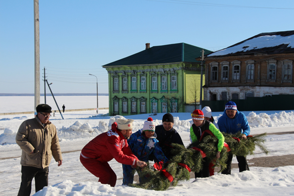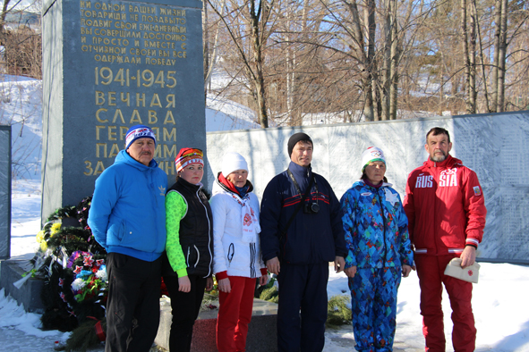 После официальной встречи лыжников им была предоставлена историческая миссия возложить огромный венок из еловых веток к подножью памятника Воинской славы. У участников глубоко осталось в памяти, как они все дружно как один поднимались по длинным ступенькам. Возложили венок, почтили память защитников Родины, некоторые даже произнесли в виде клятвы, что сегодняшнее поколение не забудет их подвиг, что помнить будет и будущее поколение. А он сами достойны представлять сегодняшних стойких людей. И связь поколений никогда не должно прерываться.