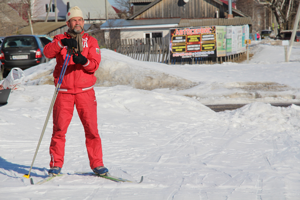 В районе автовокзала участников Лыжного перехода–2016 поджидали люди. Уже играла музыка через усилитель. Секретарь райкома КПРФ Ю.Е.Саличкин открыл встречу, пригласил всех желающих на старт. Что отрадно, в ряды проходчиков от Мари Турека до границы Чувашии встали ветераны. Среди них 83-летний Викентий Иванович Прокопьев. Он выступил приветственной речью (несмотря на солидный возраст, он говорил четко и ясно, с примерами из славной истории тружеников Горномарийского района).