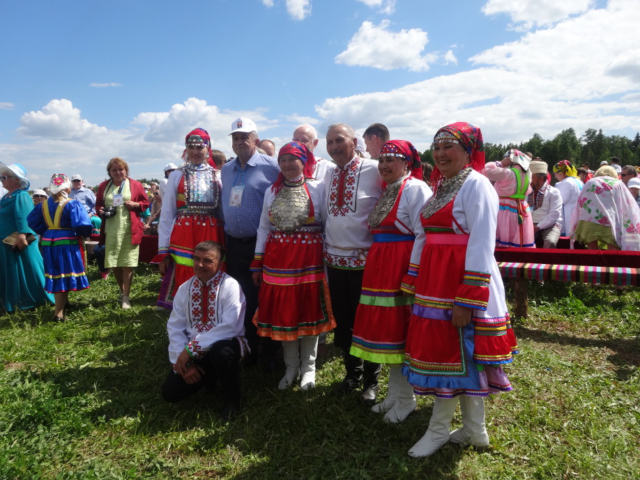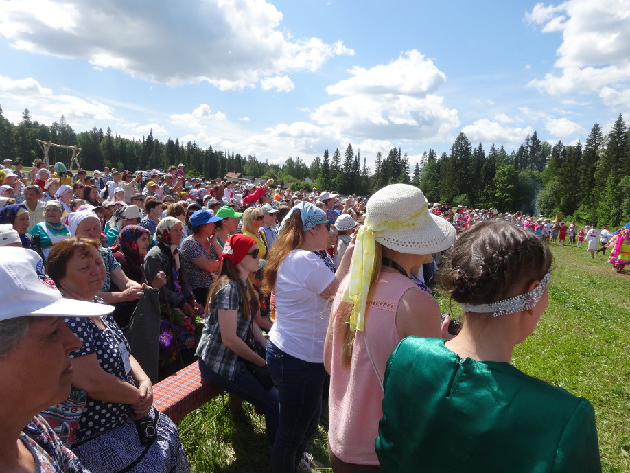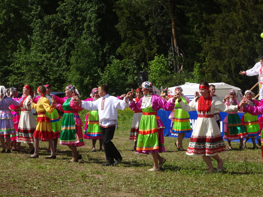 А основные мероприятия прошли во второй день праздника. С раннего утра на поляне д. Охотничий всех участников и гостей с песнями встречали марийские коллективы. Далее состоялось праздничное шествие делегаций.