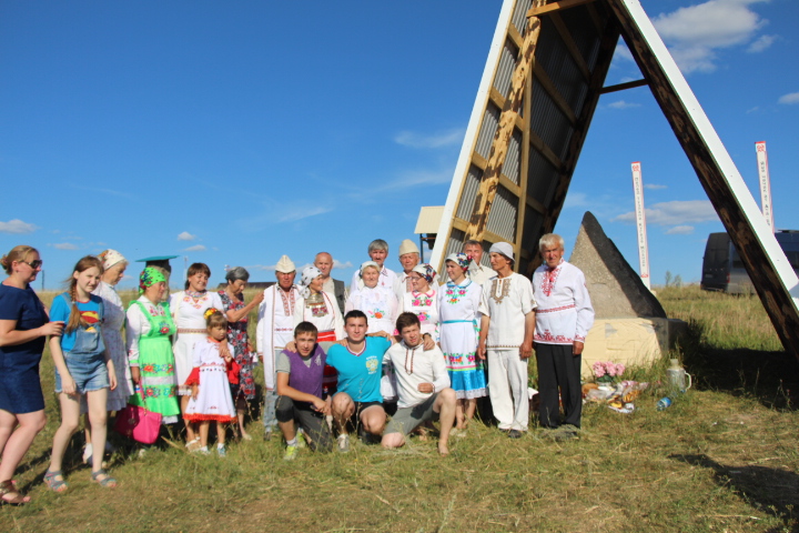 Здесь мы наряду с мариэловскими марийскими общественниками хотим сказать слова благодарности нашим далёким гостям из Свердловской области, которые полной группой приехали на Болтушину гору и на все экспонаты под открытым небом смотрели с большим интересом и восторгом. А также большую поддержку в почитании наших героев оказали онаеҥи из Башкортостана и Удмуртии. Они помогли провести моление на горе в честь Полтыш Он и его жены Шошмы.