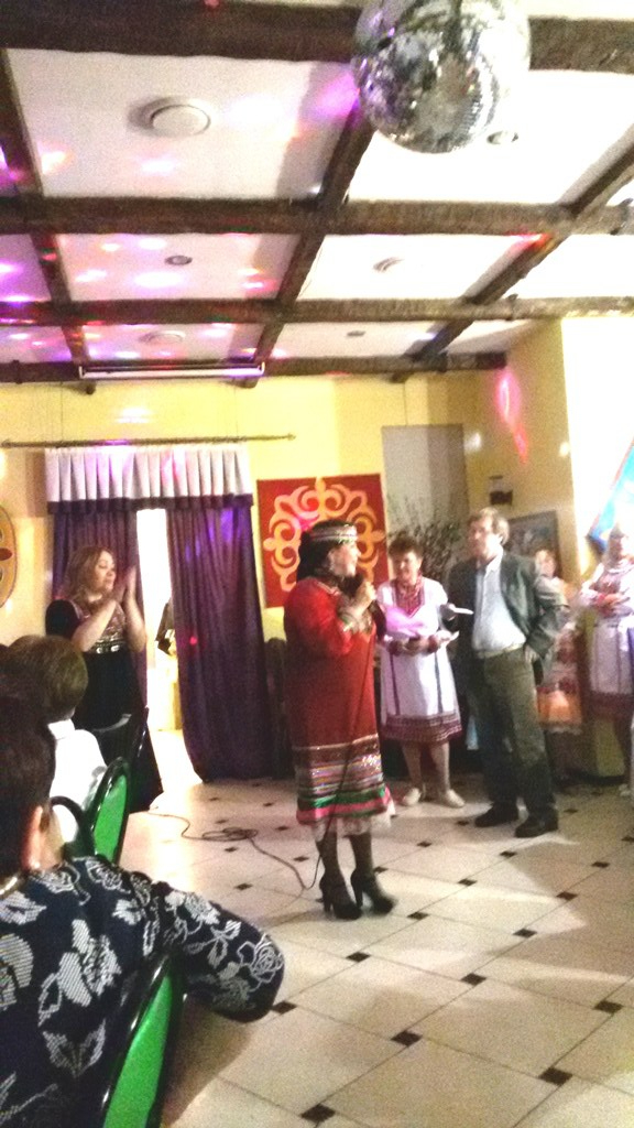 Песню под гитару исполнил ди-джей вечера Иван Сметанин, а ведущая вечера Вероника Кондратьева «зажигала» публику не только играми, но и проникновенным исполнением марийских песен и частушек. С «родственным» музыкальным приветом на вечере выступил представитель землячества коми в Москве Владимир Тюрнин.