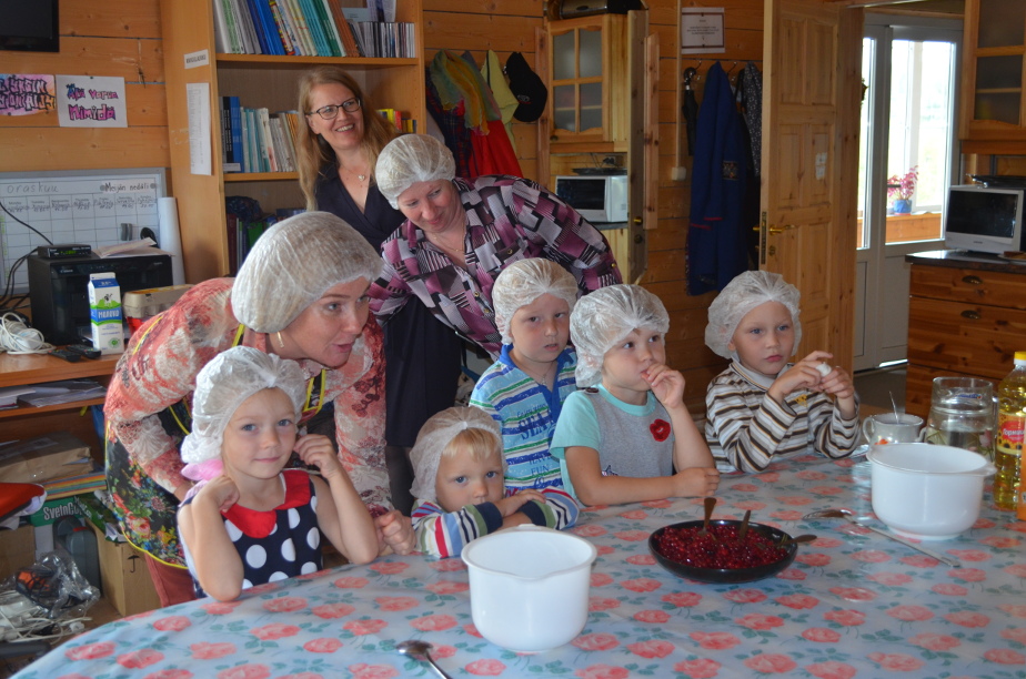 Один из партнеров проекта – Дом карельского языка – наглядно показал результаты кропотливой работы языковых активистов Ведлозера. Дети из «языкового гнезда» участвовали в мастер-классе на карельском языке по приготовлению традиционного карельского десерта tönčöi – брусники с толокном.