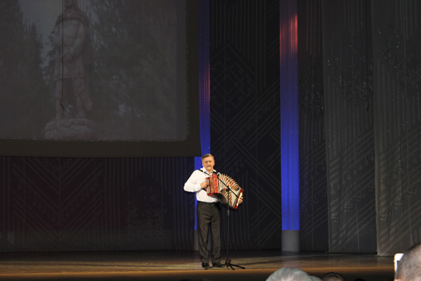 Тон концерту задал народный артист Республики Марий Эл Вячеслав Созонов. Его авторская песня «Черемис» на музыку Григория Архипова поднимает дух народа мари и его положительные качества – самоотверженность, смелость, плечо рода, желание жить достойно. Глаза артиста горели так, что второе отделение снова началось с его акапельного исполнения марийской народной песни. Мощнейший голос, текст и красивейшая мелодия-пентатоника сделали своё дело. Мне показалось, что зрители не отпустят Вячеслава со сцены! Ровно так же под бурный шквал аплодисментов завершали свои номера Иван Соловьев, Александр Егошин, Зоя Берникова, Володя Матвеев и маэстро флейтист Виталий Шапкин. Бархатистый альтовый голос эстрадной певицы и актрисы, всенародно любимой Светланы Строгановой привёл зал в неописуемый восторг.