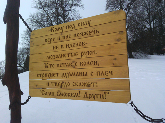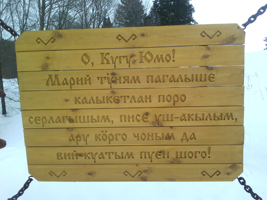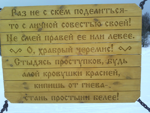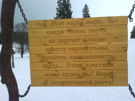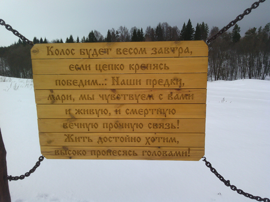 Наш коллега Владимир Короткий, русский по национальности, а мари в душе, впервые здесь: «Я удивлён таким природным и святым местом». Он очень долго вчитывался и впитывал содержательные патриотические тексты на установленных щитах. Впечатлило!