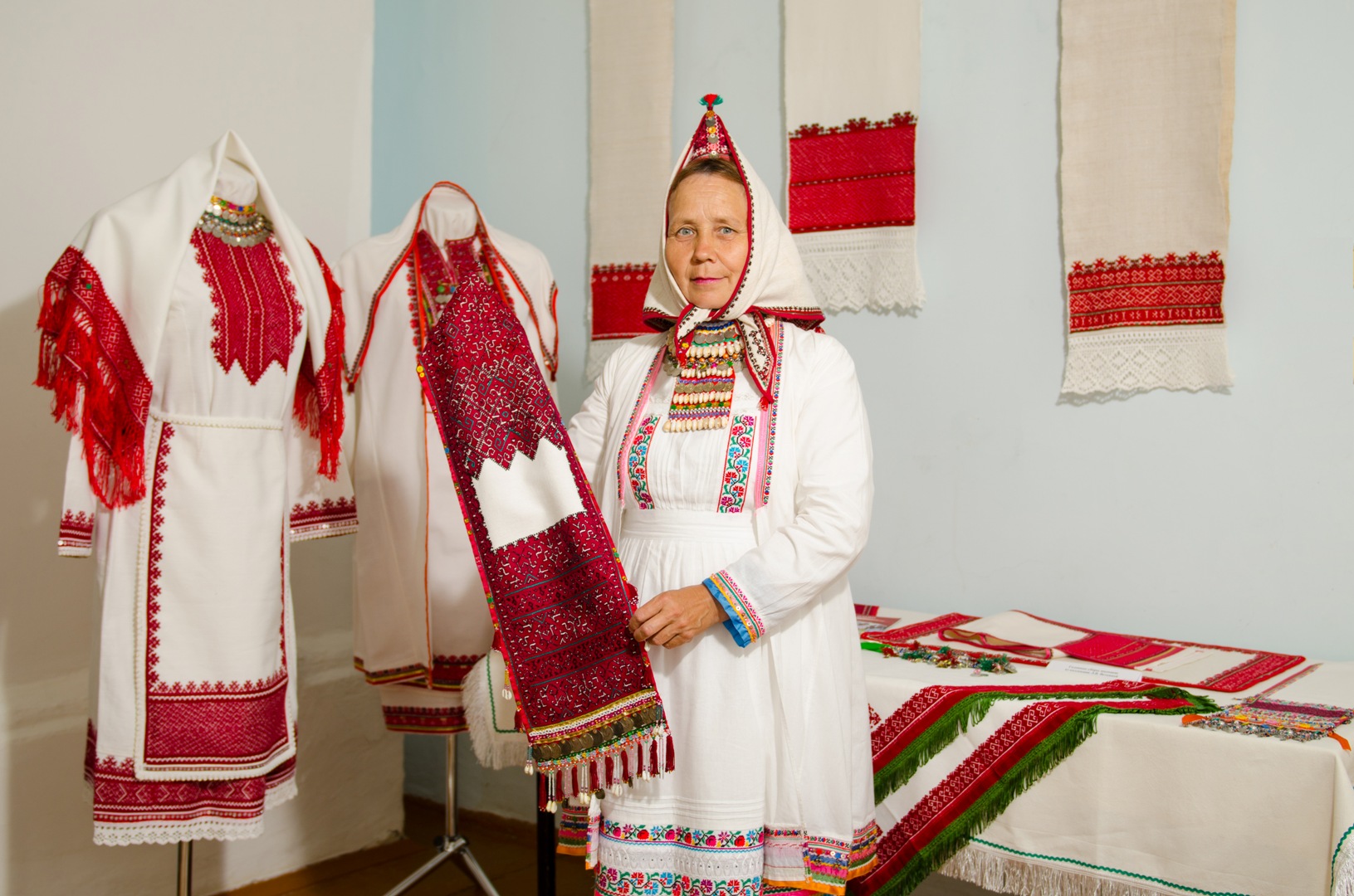 В представленных на выставке коллекциях народных костюмов сернурских мари, предметов декоративно-прикладного искусства можно увидеть такие же узоры, которые создавались более века назад. Восстановленные по уникальным этнографическим материалам работы, в т.ч. из фондов Национального музея Республики Марий Эл (РМЭ) имени Тимофея Евсеева, произведения искусства отчётливо передают нам всё богатство мира народного творчества.