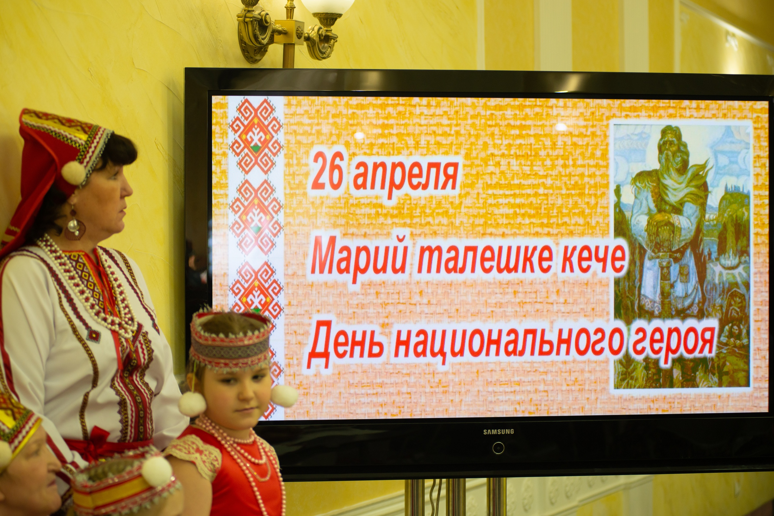 Ведущая Алина Тимкова коротко рассказала об одном из важных праздников марийского народа — Талешке кече. Он проводится ежегодно 26 апреля. В этот день 1556 года в бою, защищая крепость Малмыж, погиб марийский князь Полтыш (Болтуш). В честь его памяти, а также всех национальных героев всех времен отмечается этот праздник.