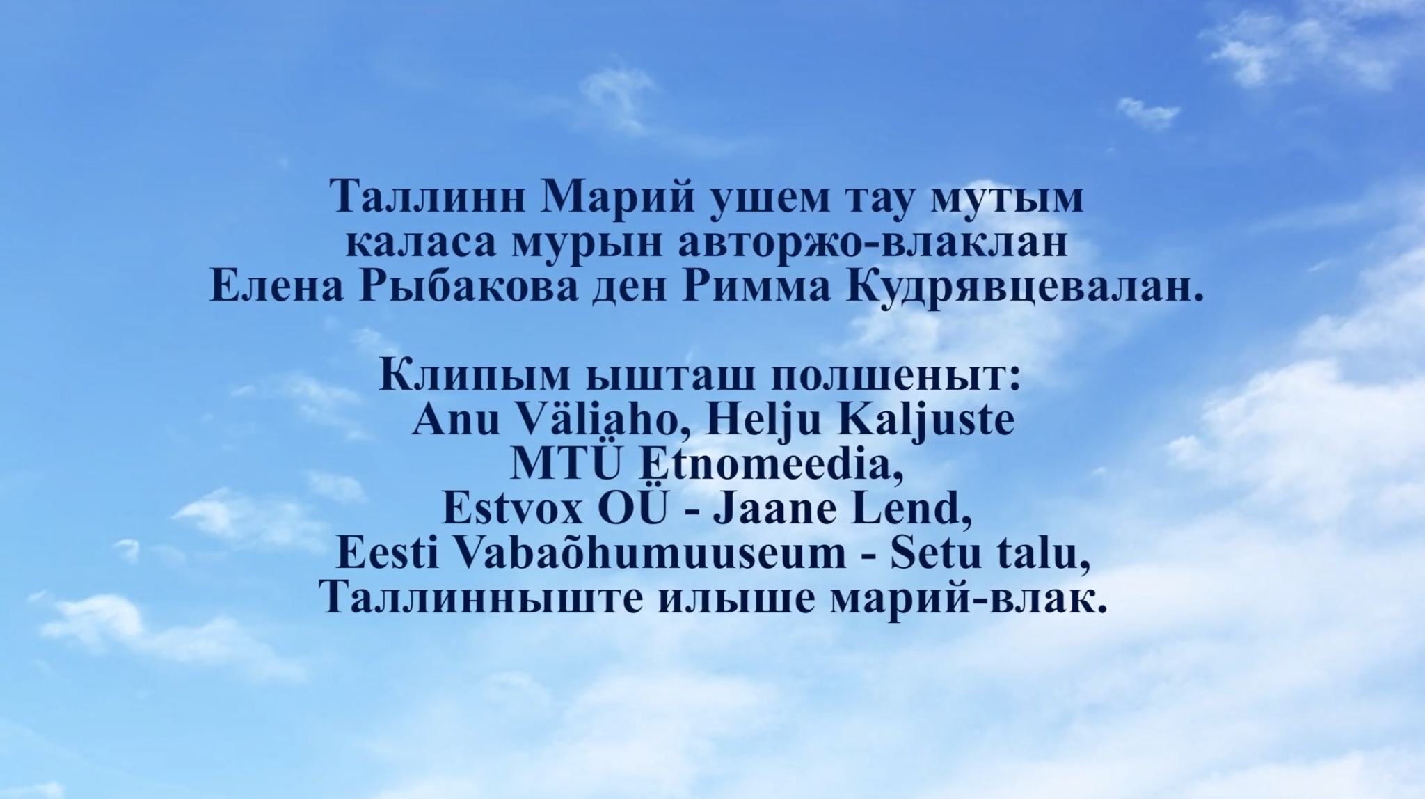 Таллиннские мари представили на суд зрителей музыкальный клип на песню «Авай» («Мама»). Слова песни Риммы Кудрявцевой, музыка Елены Рыбаковой.