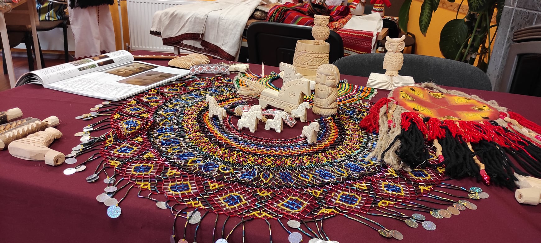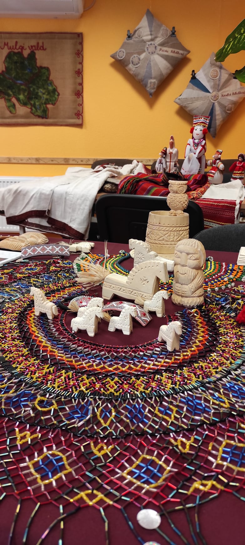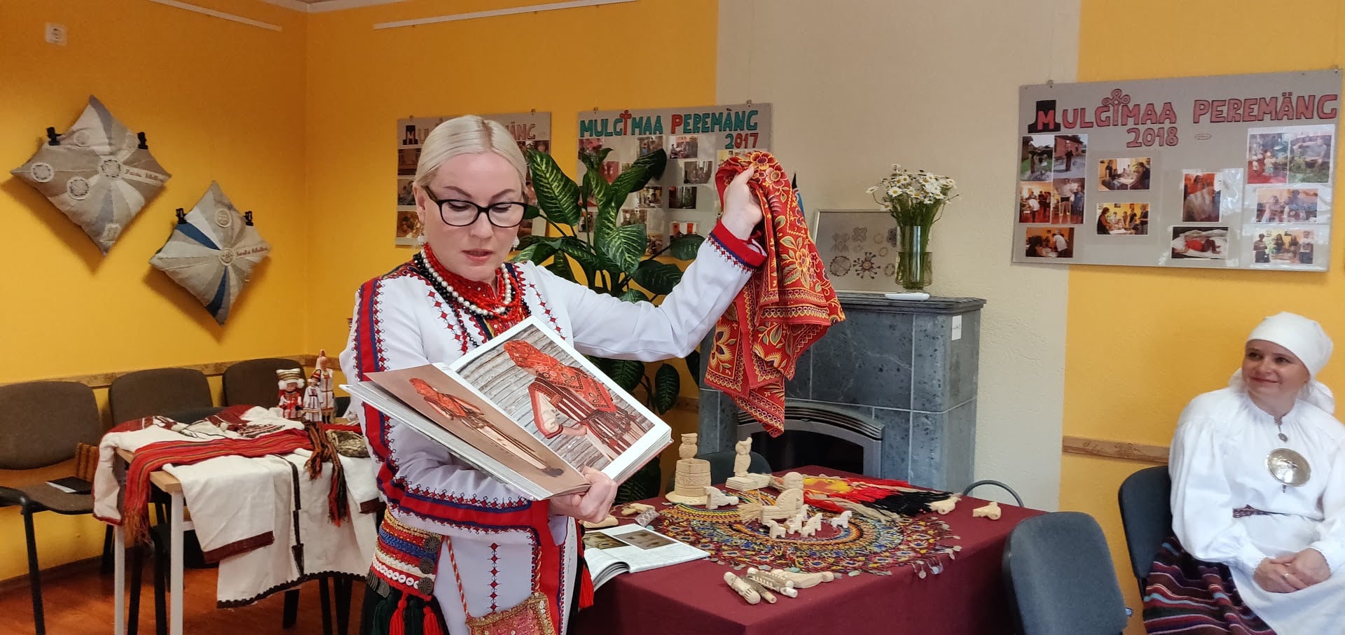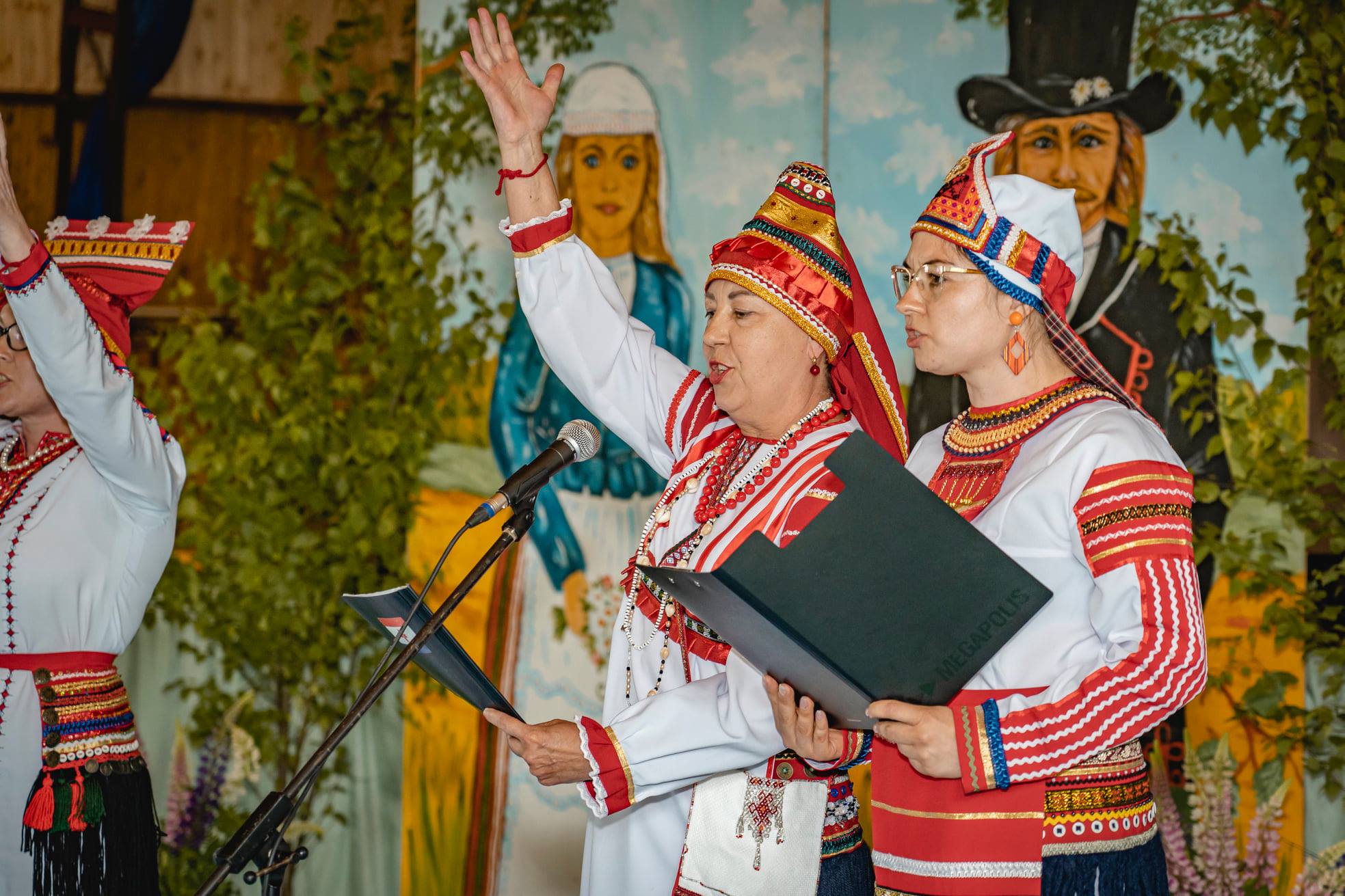 Со своей стороны мы приготовили для местной публики интересную программу: прежде всего — это наши песни на эрзянском и мокшанском языках, выставку декоративно-прикладного искусства общества тавлинских мастеров «Эрьмезь». Также на выставке мы представили самые ценные экспонаты нашей коллекции: старинный эрзянский костюм конца XIX века, удмуртское национальное платье, украшения, старинные вышивки, элементы головных уборов и много другое.