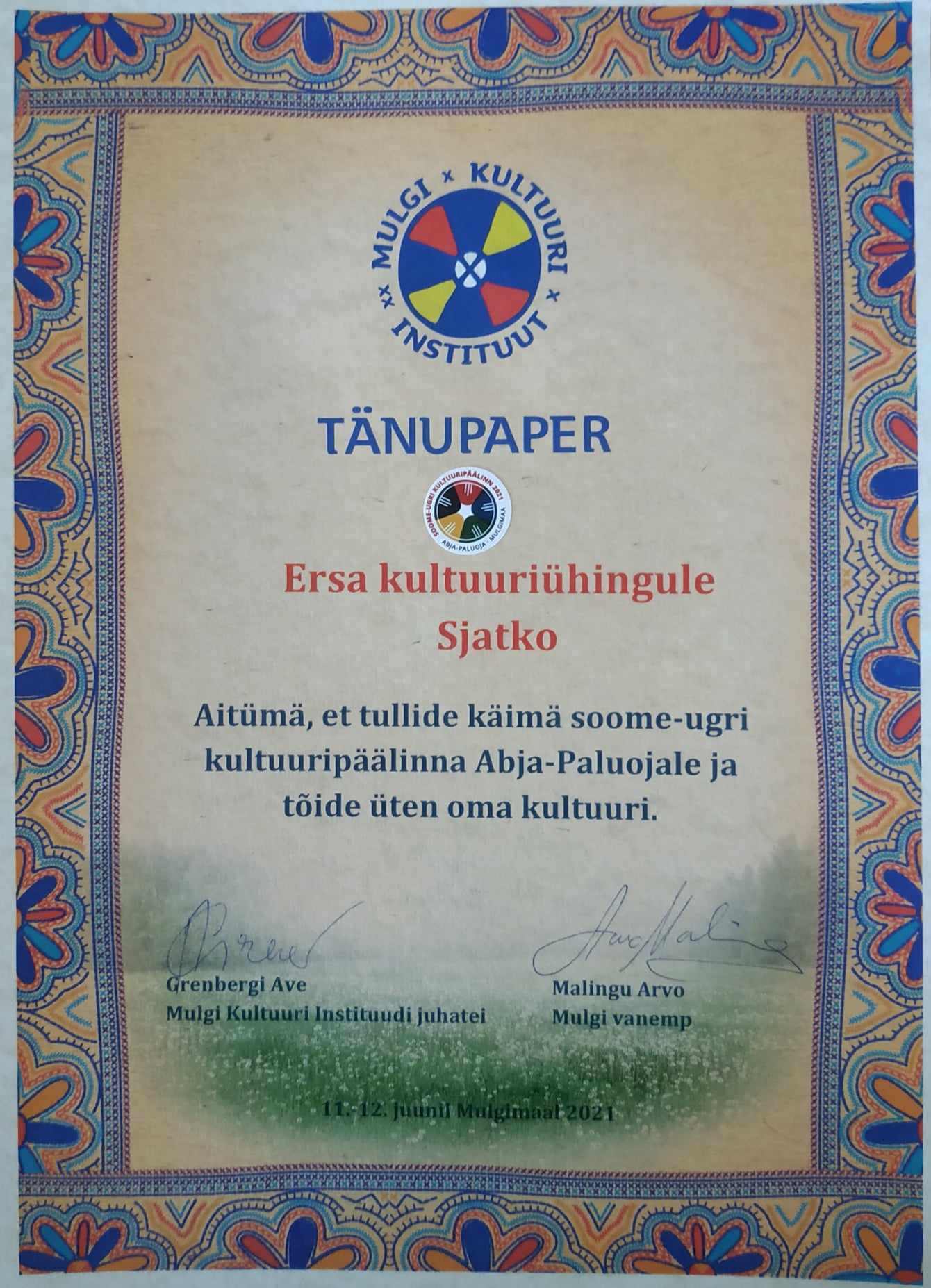 С 11 по 12 июня наше общество культуры «Сятко» посетило культурно-историческую область Эстонии Мульгимаа. Нас пригласилa руководитель Мулькского института культуры Аве Гренберг, пишет Наталья Абросимова в соцсети Facebook.