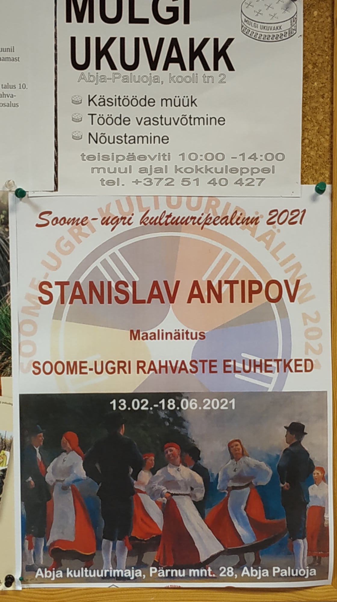 В доме культуры мы познакомились с экспозицией картин удмуртского художника Станислава Антипова. Передвижная выставка «Моменты из жизни финно-угорских народов» — одна из популярных серии картин по всей Эстонии, которая экспонируется в рамках культурной столицы этого года.
