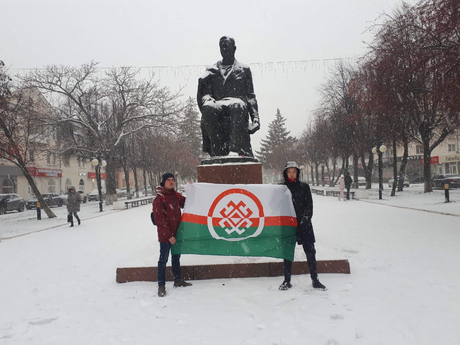 Несмотря на режимность и разгул пандемии, марийские активисты пришли к памятнику основоположника марийской литературы Сергея Чавайна, репрессированного и расстрелянного 11 ноября 1937 года, возложили цветы, провели час памяти.