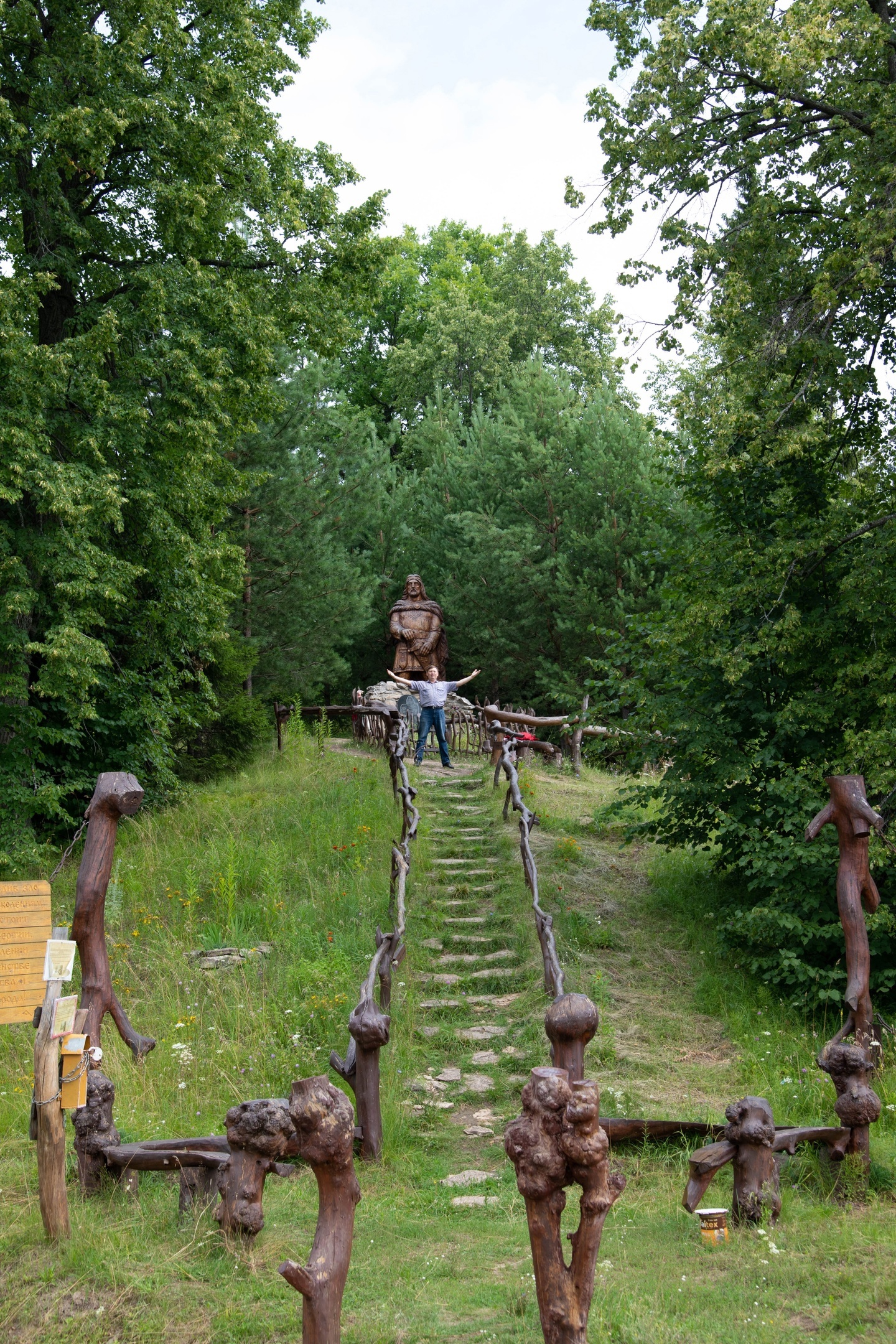 А в это время присутствующие не только смотрели и в такт пританцовывали номерам артистов со сцены, от которых трудно было оторваться, но и группами шли поклониться нашему марийскому национальному герою Чоткар патыру. Скульптура его высотой 4,5 метра величественна, завораживает. Это по-настоящему шедевр деревянного зодчества, рукотворно изготовленный мастером по дереву Владимиром Антроповым. Острый, величественный взгляд героя древности с горы, охватывающий всю марийскую землю, как бы говорит поколениям:
