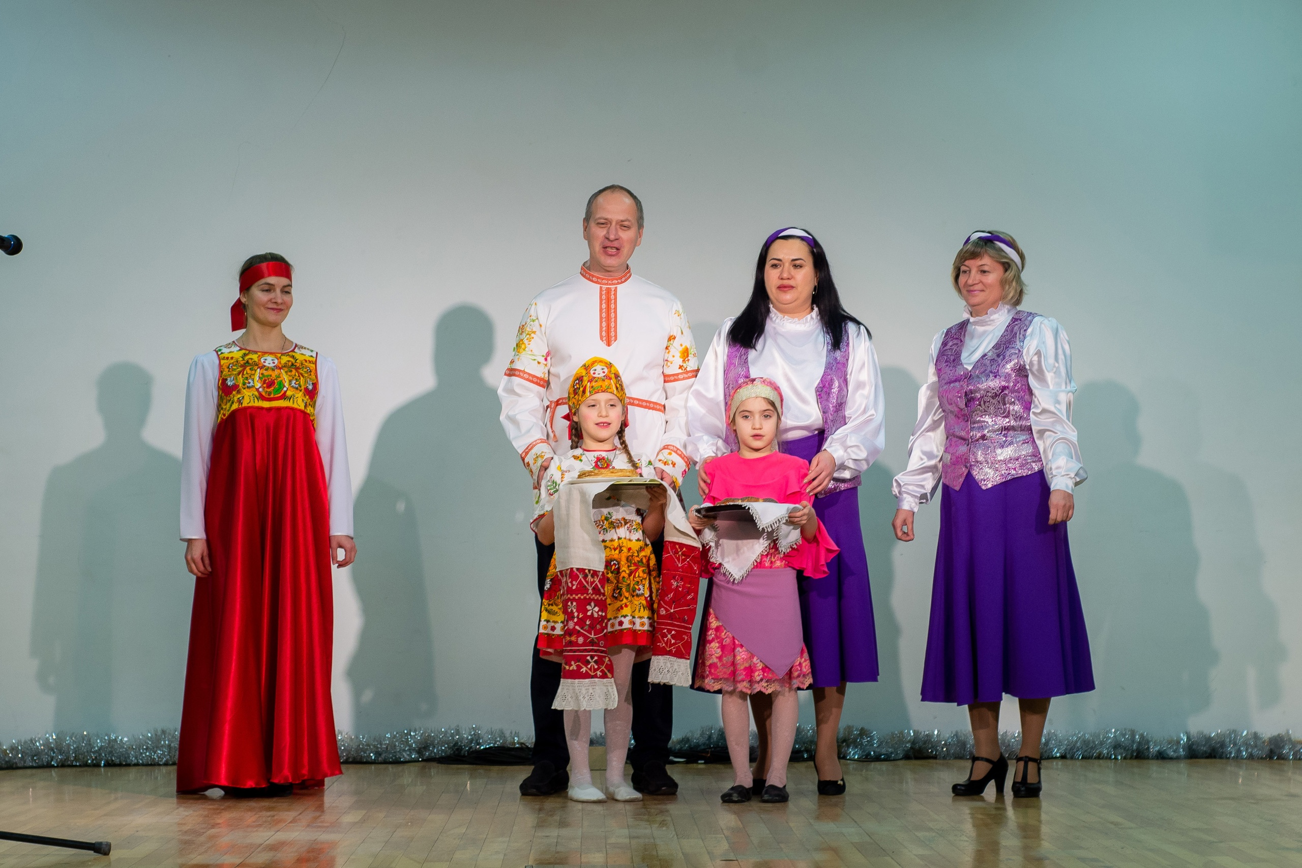 В рамках конкурсных выступлений семьи рассказывали о себе в формате «визиток», а также представляли творческие номера на родных языках супругов в народных костюмах и презентовали национальные блюда. Кроме того, на сцене выступали и группы поддержки.