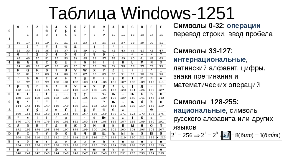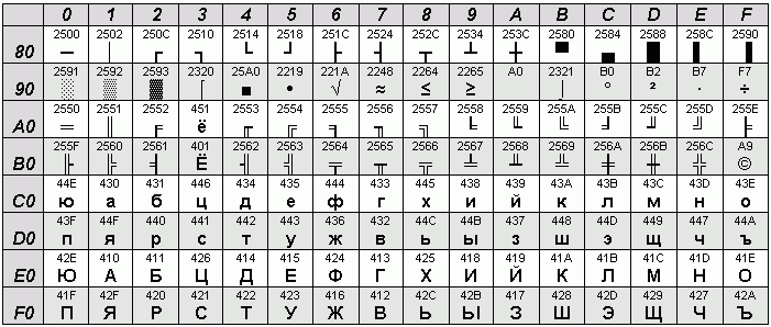 И причём тогда для русского языка было несколько кодировок: Windows-1251, CP866, KOI8-R и ISO 8859-5, где знаки расположены в разном порядке. Например, в Win-1251 буквы были в алфавитном порядке, в KOI-8 порядок русских букв совпадал аналогам английских с верхней части, т.е. L – Л.
