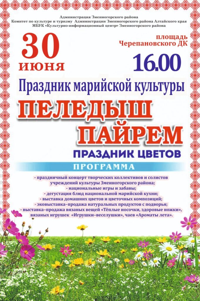 30 июня в посёлке Черепановский Змеиногорского района Алтайского края отметят марийский национальный праздник Пеледыш пайрем. Об этом сообщил Алтайский государственный дом народного творчества.