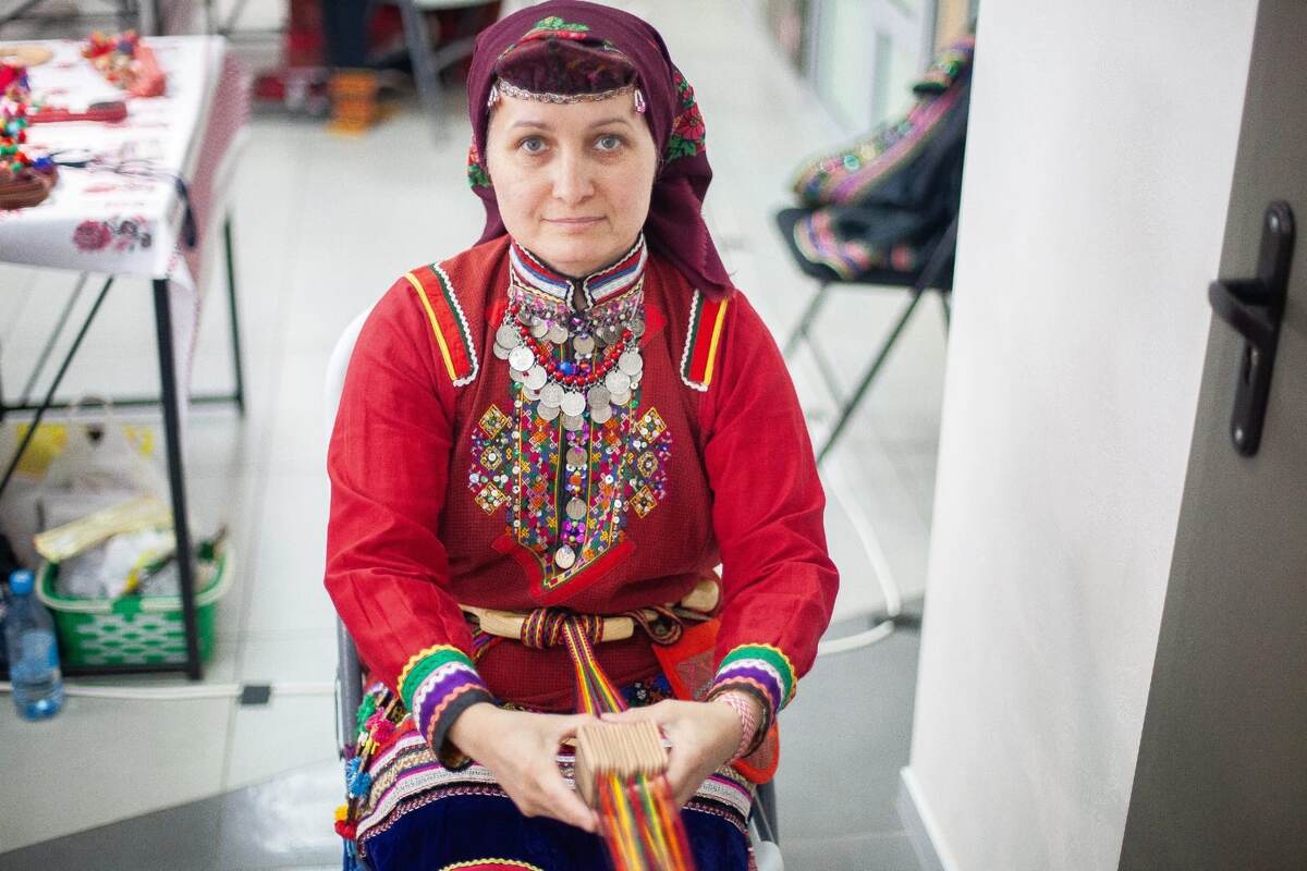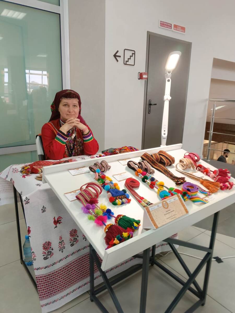 Татьяна, представительница уральских марийцев, уже 9–10 лет профессионально занимается ткачеством. Её страсть к этому ремеслу пробудили семейные реликвии — национальные одежды и пояса прабабушки.