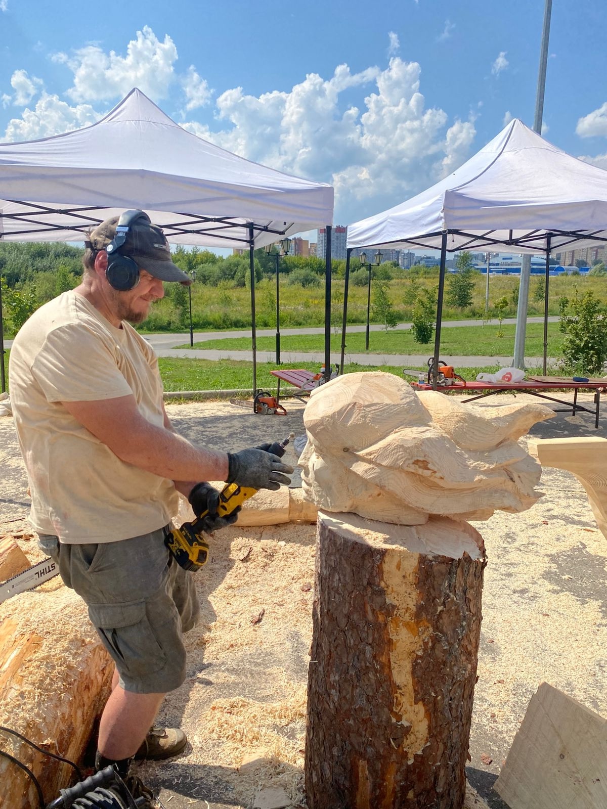 На соревнование приехало девять мастеров из Марий Эл, Удмуртской Республики и Московской области. В этом году участники создадут скульптуры, посвященные марийским богатырям и героям, таким как Пашкан, Чумбылат и Акпатыр. По завершении фестиваля все работы будут размещены в Марий парке.